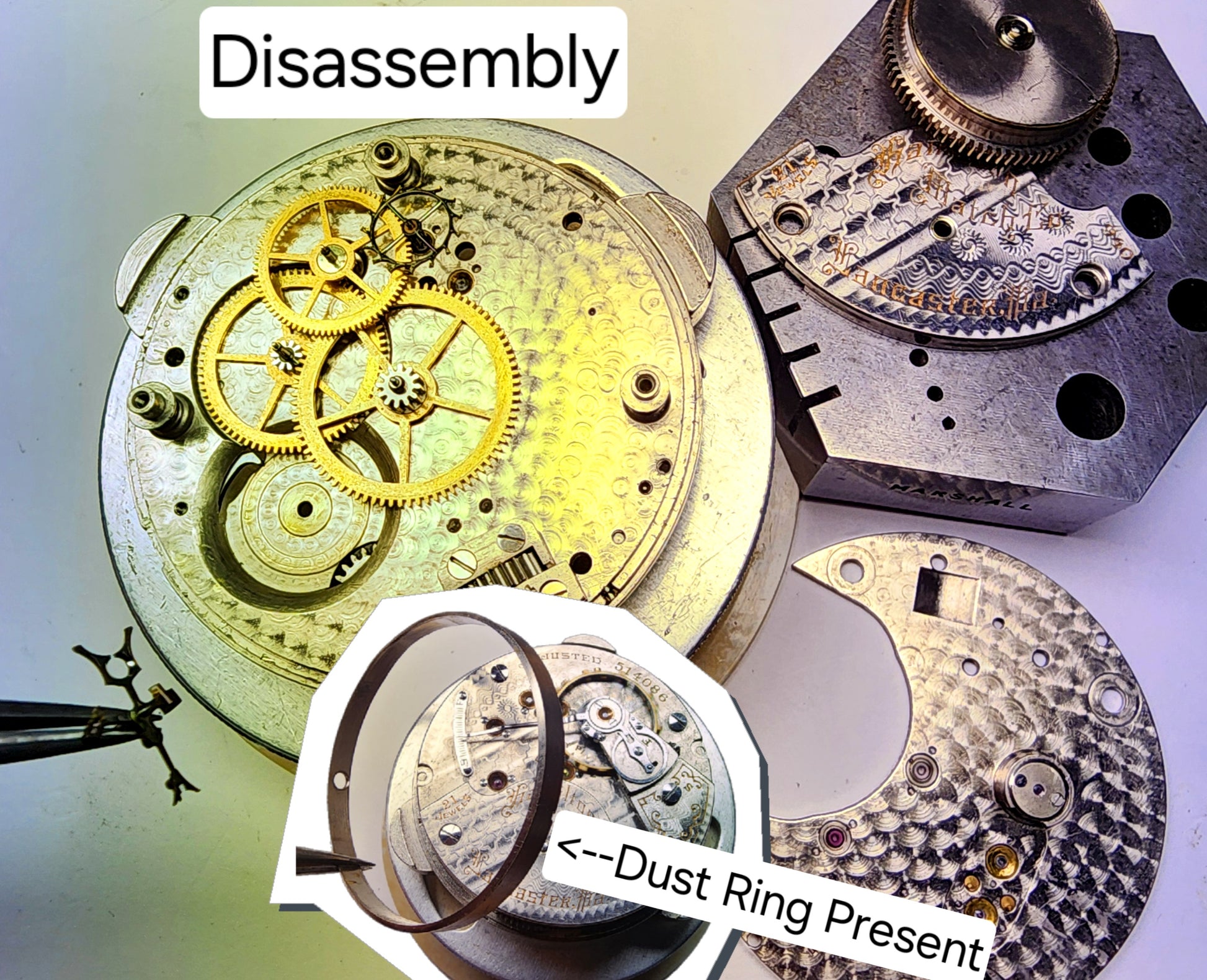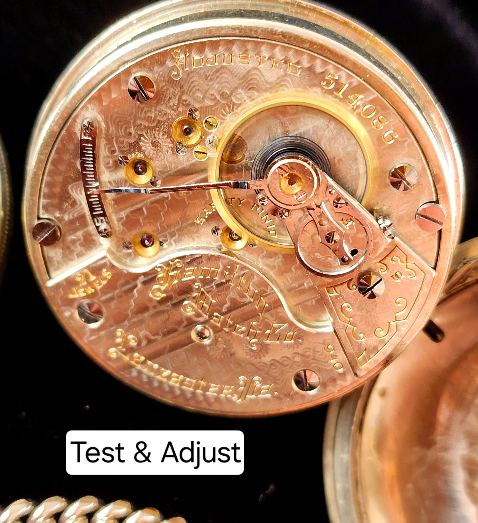 I have completely overhauled the 21 jewel movement, and it is running stronger than ever. I completely disassembled it...and when I say that I mean the mainspring removed from the barrel, new one installed, cap jewels removed, hairspring & balance cleaned ... all of my pieces are done this way. It was lubed with fine Swiss synthetic oils & greases. They all receive the works as they should.