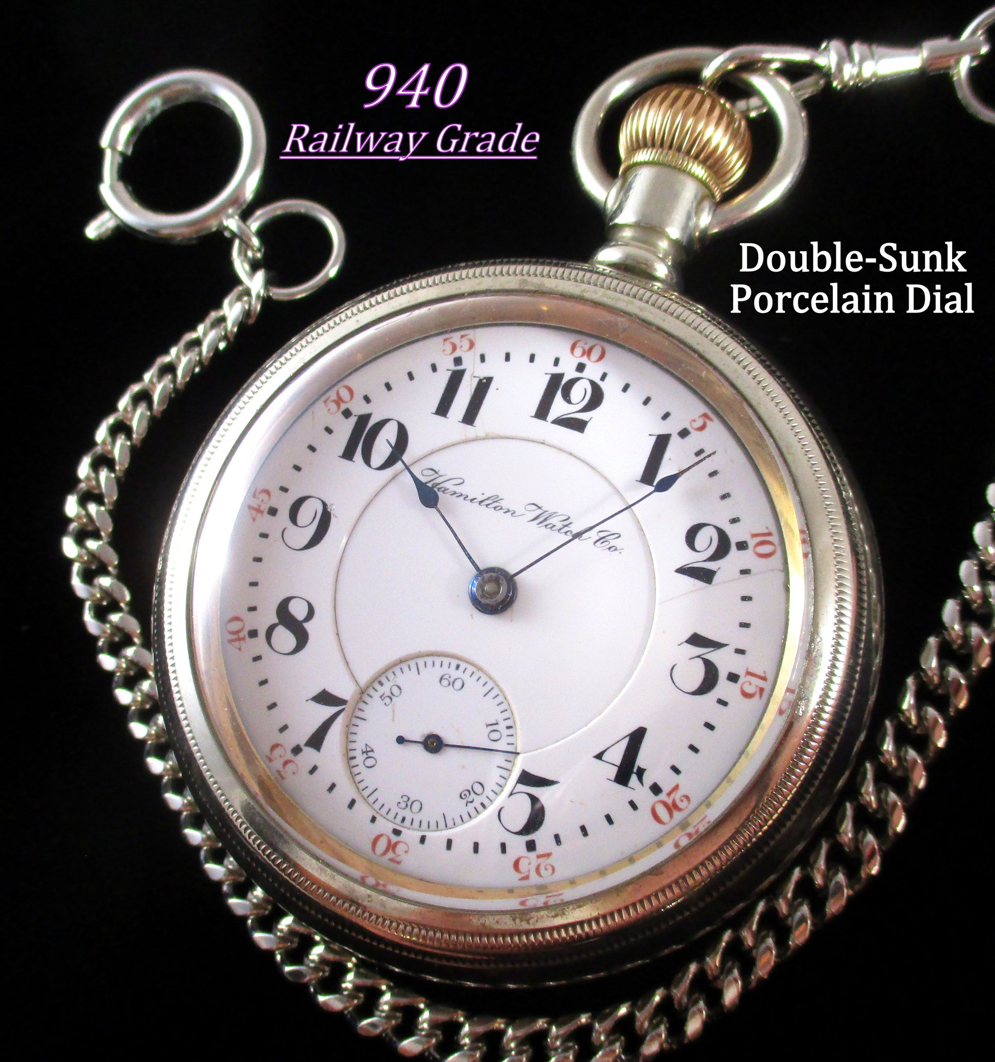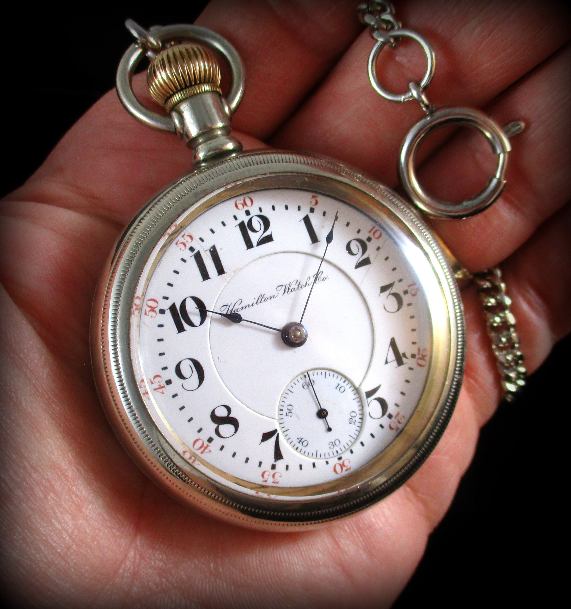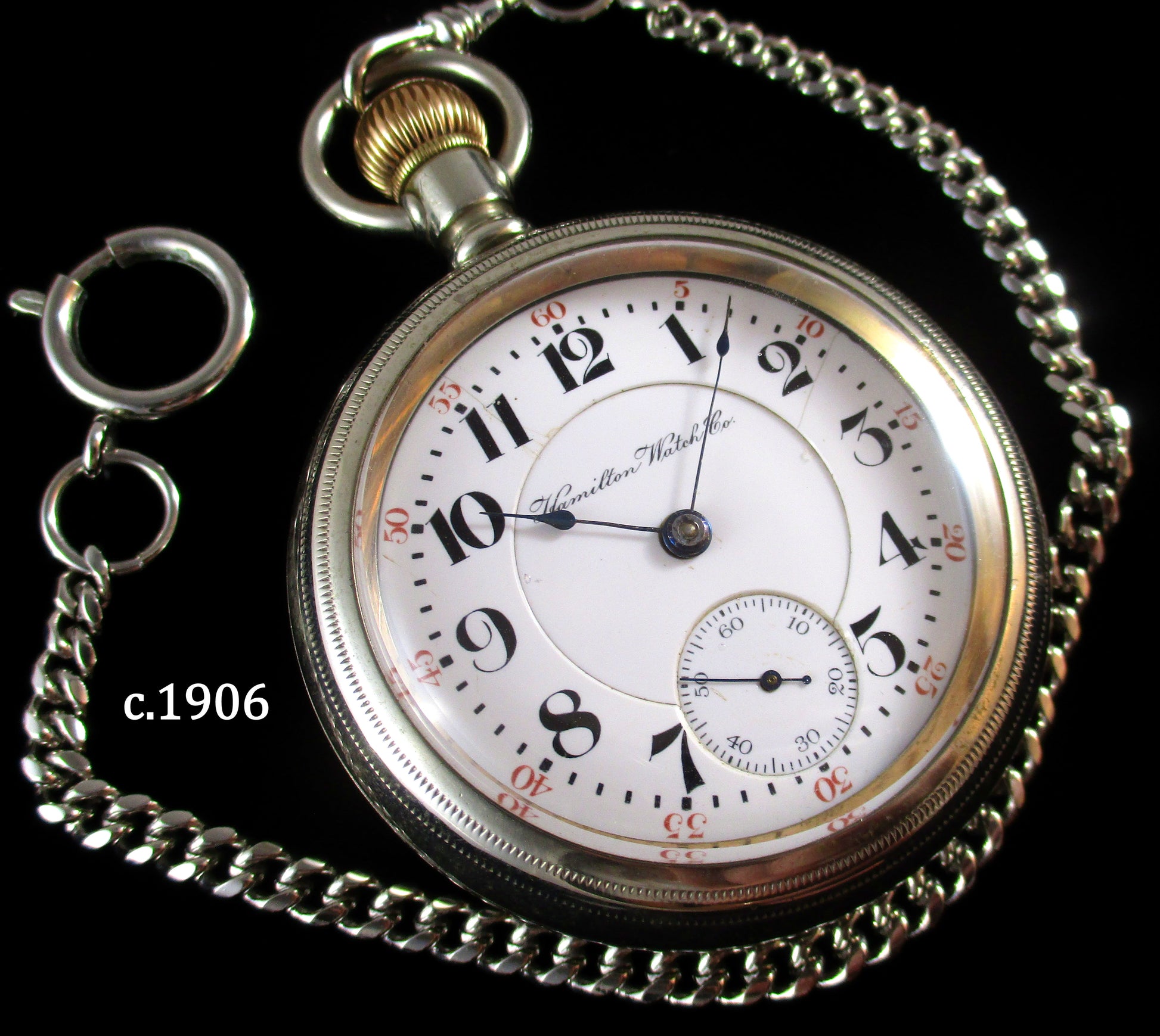 Here is a very nice example of timepiece from the beginning of the 20th century. It is a Hamilton 940 pocket watch with serial number 514086, dating it to c.1906.