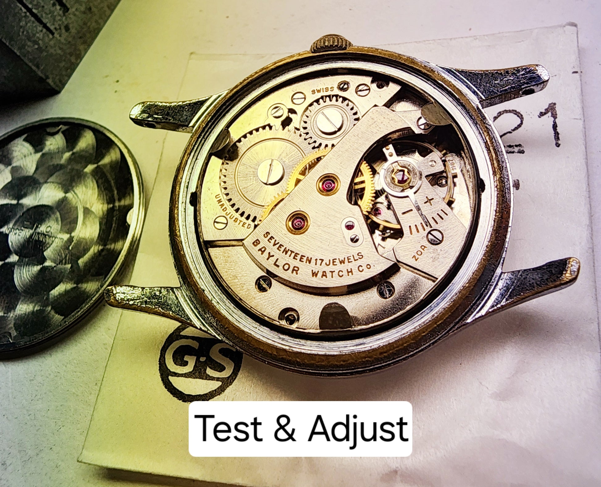 The 17 Jewel, shock protected, Swiss movement has been overhauled. I completely tore it down, cleaned and rebuilt it using high grade Swiss synthetic oils & greases. Doesn't get much better!