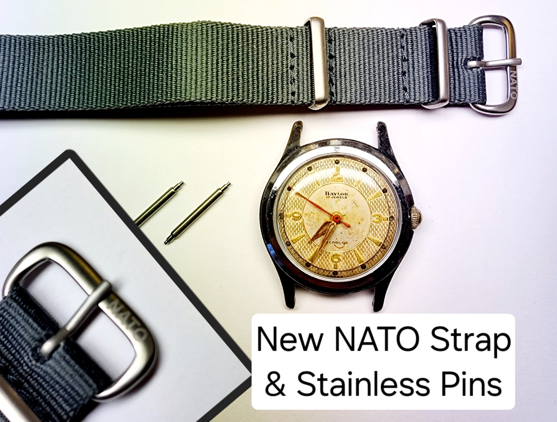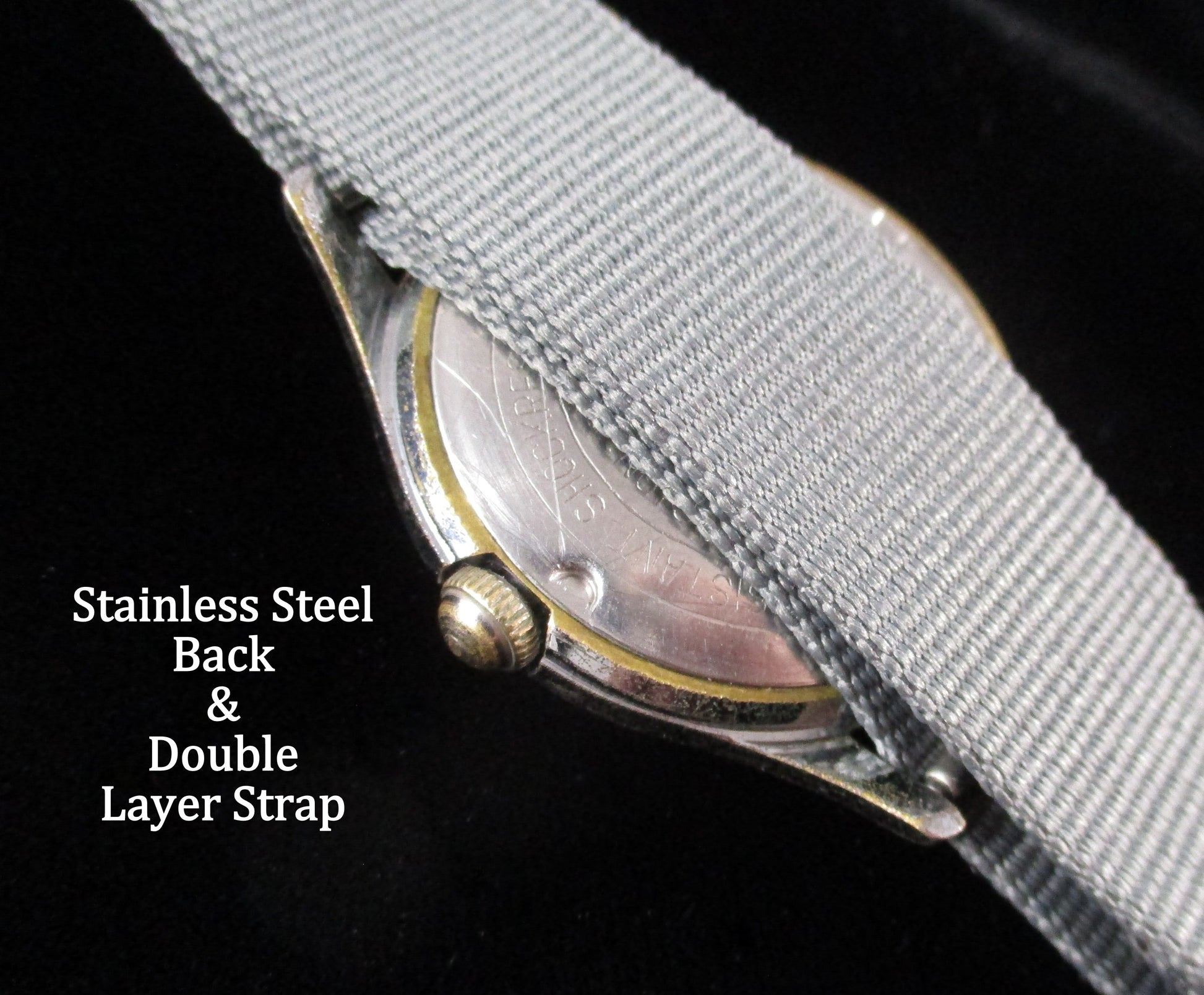 Attached is brand new durable NATO sport strap. I use the same one on a few of mine, very comfortable.