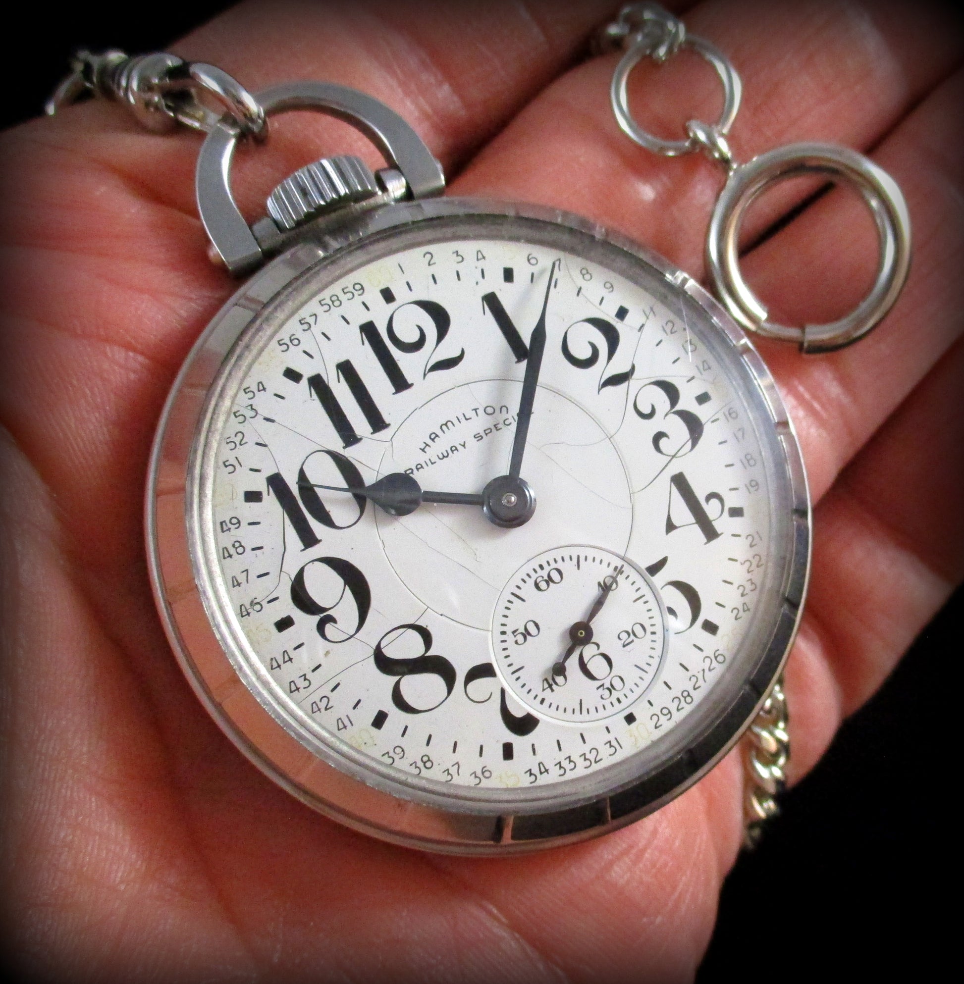 A new 10'' chain has been attached to this bold beauty. ALWAYS use a chain! Dropping is extremely hazardous to a timepieces health.