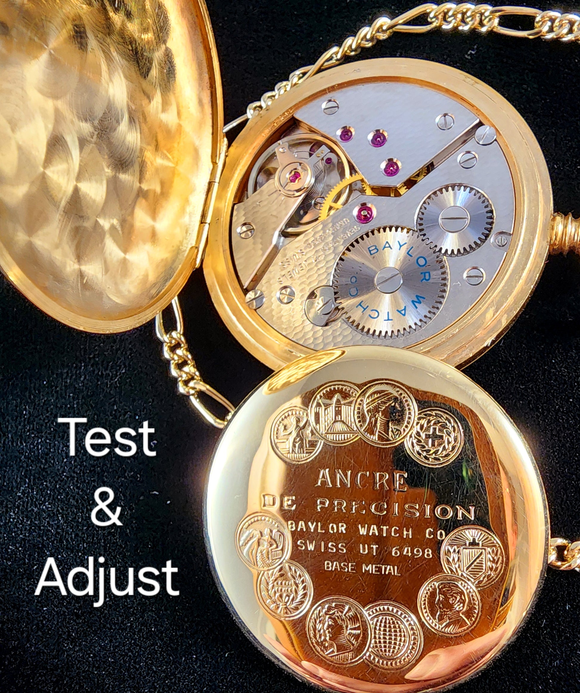 The Swiss 17 jewel shock protected movement has been completely rebuilt and is running stronger than ever. I completely disassembled it...and when I say that I mean the mainspring removed & replaced from the barrel, cap jewels removed, hairspring & balance cleaned...all of my pieces are done this way. It was lubed with fine Swiss synthetic oils & greases. They all receive the works as they should.