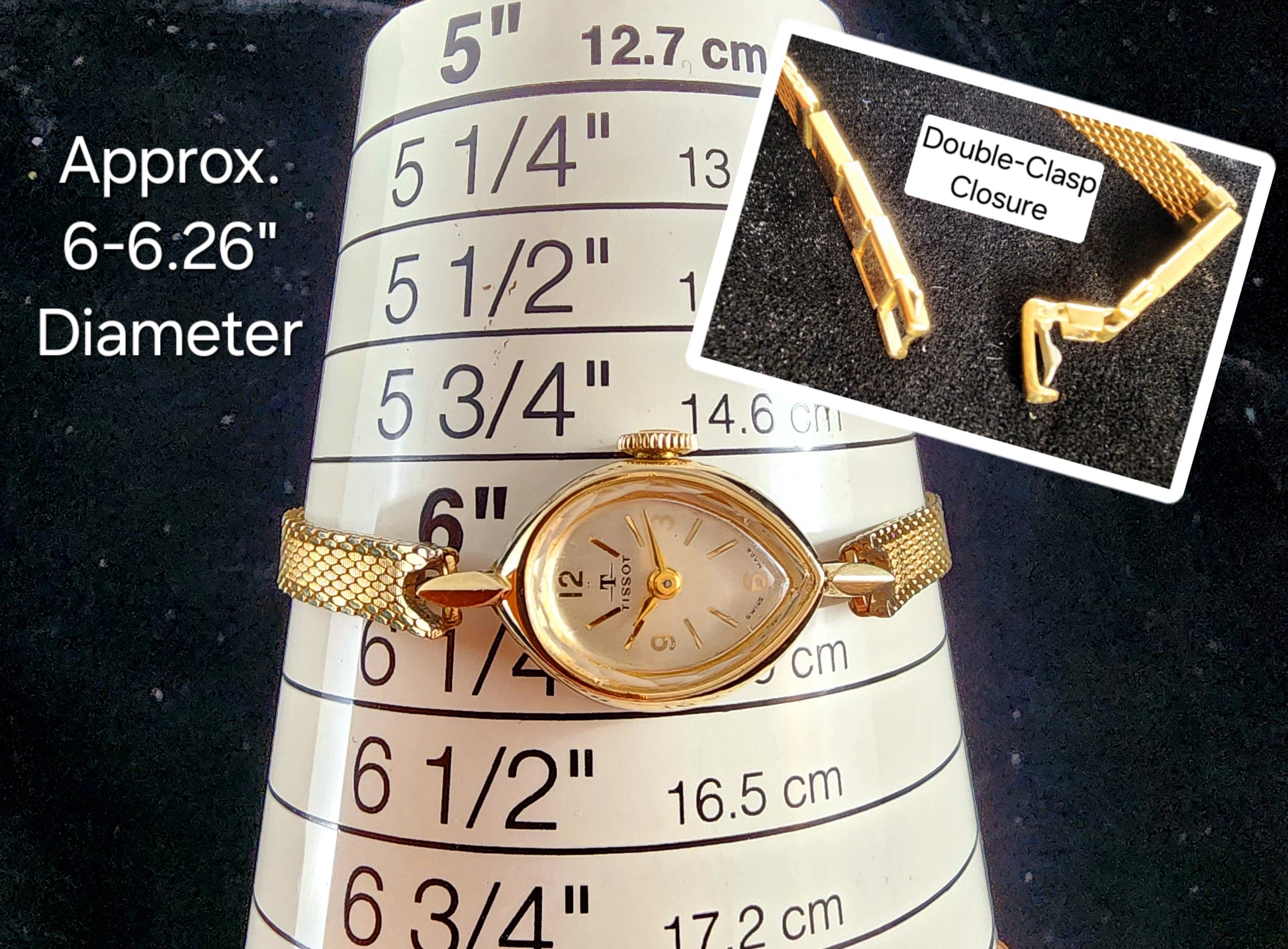 The glass "diamond edge" factory crystal protects the original ivory Tissot dial. The gold plated bezel & and bracelet are in marvelous condition, and have a stainless steel back for strength.